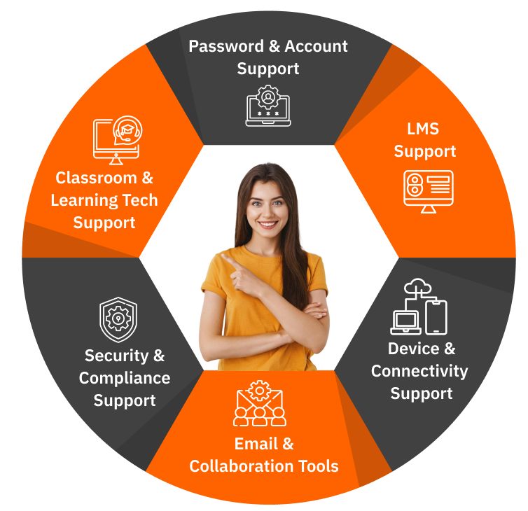 At BlackBeltHelp, we know that technology is the backbone of today’s learning experience. From accessing learning management systems and resetting passwords to connecting devices and staying secure online, our 24×7 IT help desk ensures that students, faculty, and staff receive fast, reliable support whenever they need it.