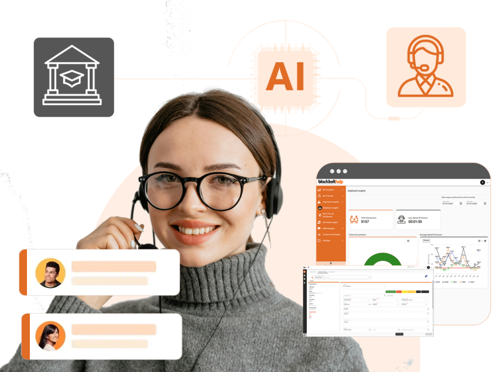 24/7/365 One-Stop live support with a highly trained team of professionals offering personalized, AI-driven guidance through multiple channels (web, live chat, text, phone). Seamlessly integrated with your campus technologies, BlackBeltHelp Student Services Solution provides a single point of contact for student inquiries around registration, records, accounts, and beyond.